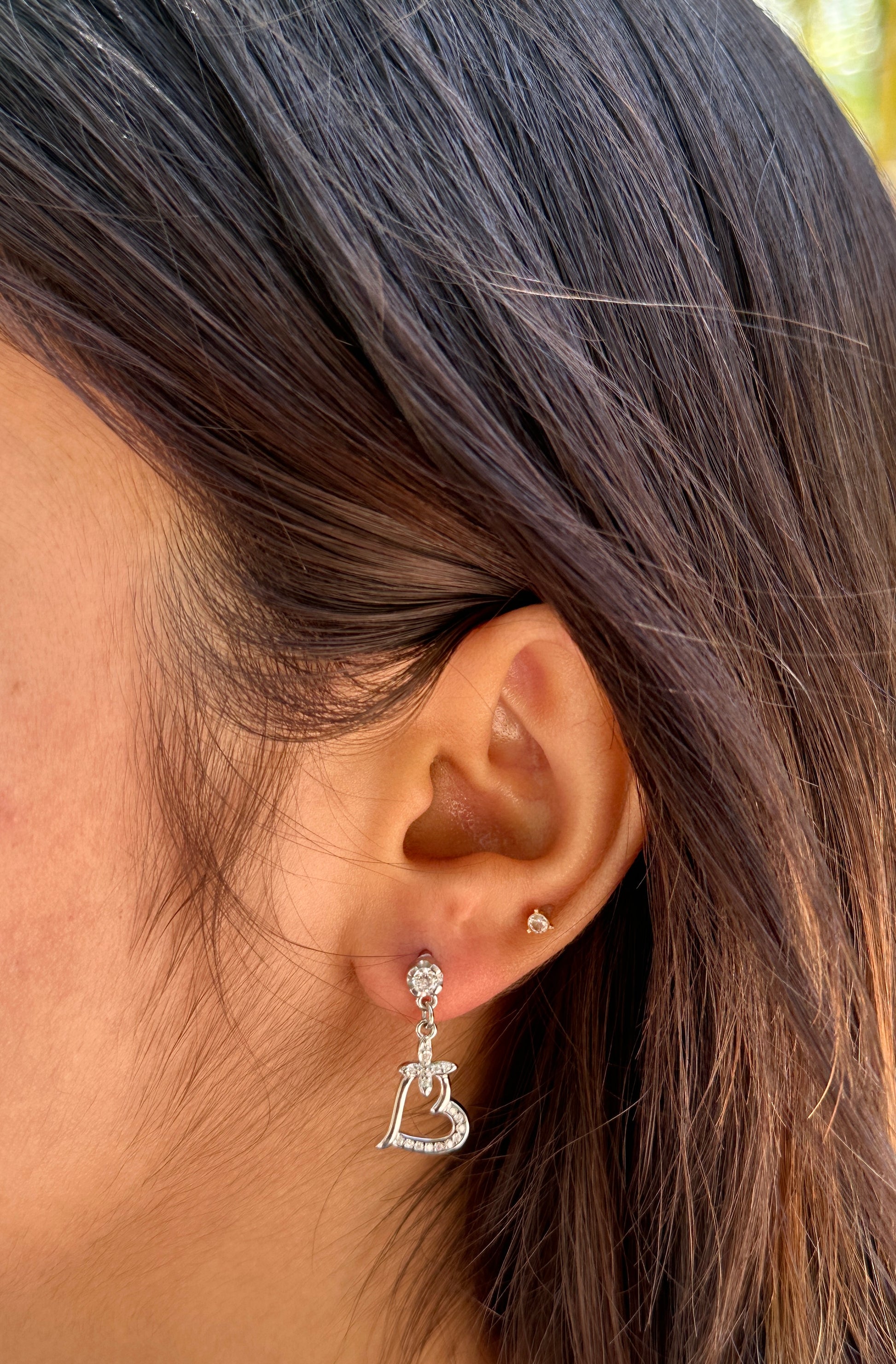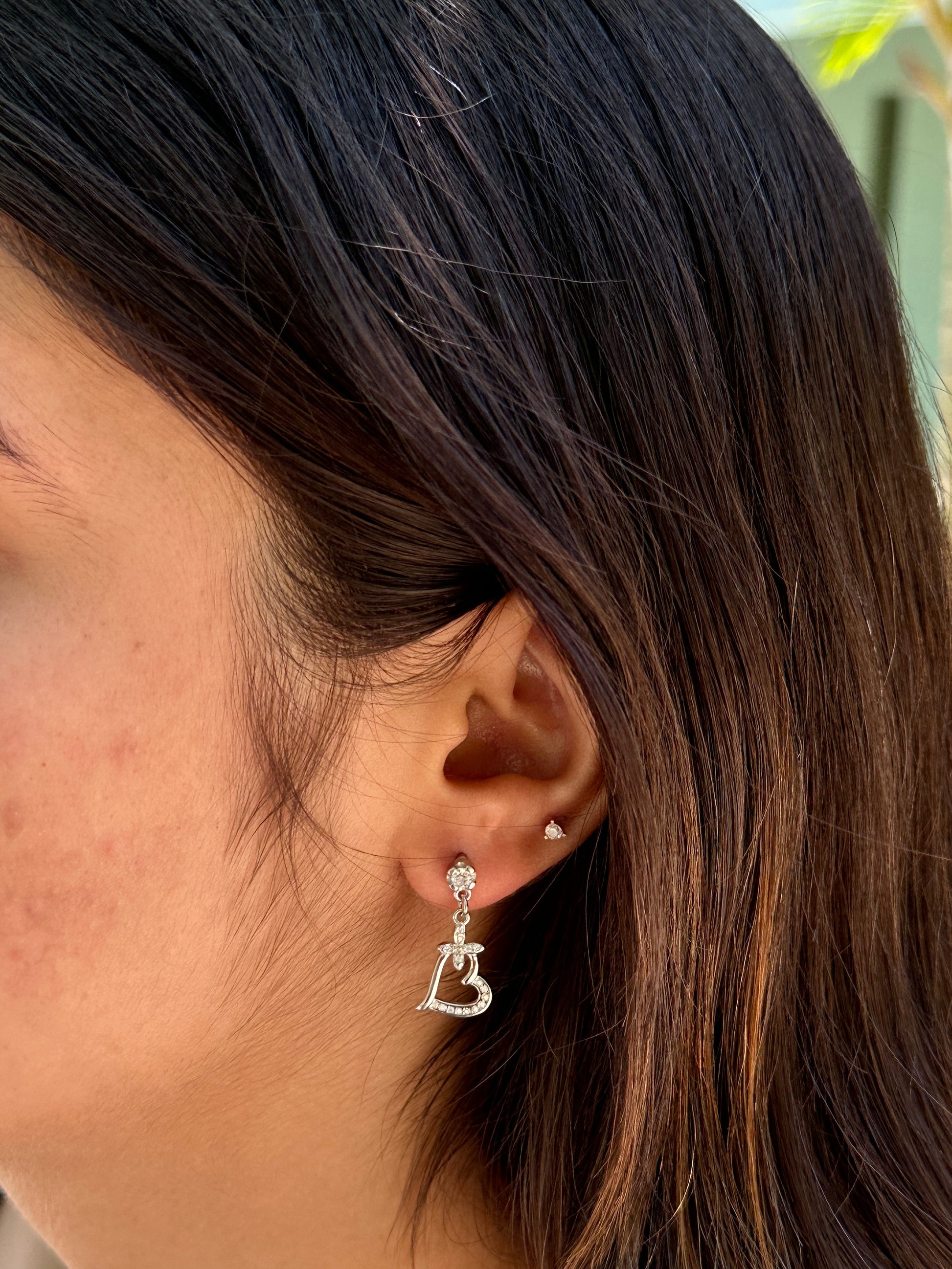 These elegant silver heart-shaped earrings symbolize love, beauty, and timeless charm. Adorned with sparkling stones, they’re the perfect accessory to add a touch of romance to your look. Shine with love, wear with confidence!